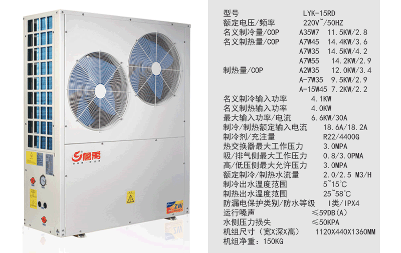 五、LYK-15RD超低溫空氣源熱泵機(jī)組參數(shù):