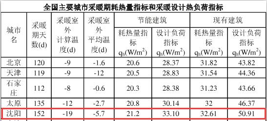 根據《全國主要城市采暖期耗熱量指標和采暖設計熱負荷指標》,沈陽市非節能建筑每平方米采暖季供暖所需熱能為32.61w/㎡*24h*152d/1000=118.96kwh/㎡