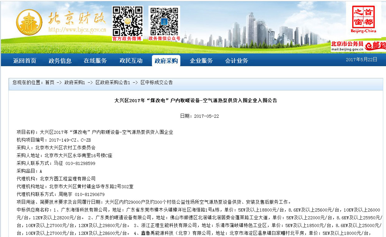 喜報(bào)丨鑫魯禹入圍2017年北京市大興區(qū)”煤改電”項(xiàng)目