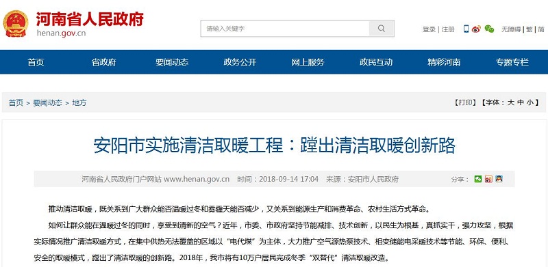 安陽(yáng)市人民政府運(yùn)用空氣源熱風(fēng)機(jī)結(jié)合相變儲(chǔ)能蹚出清潔取暖創(chuàng)新路