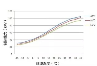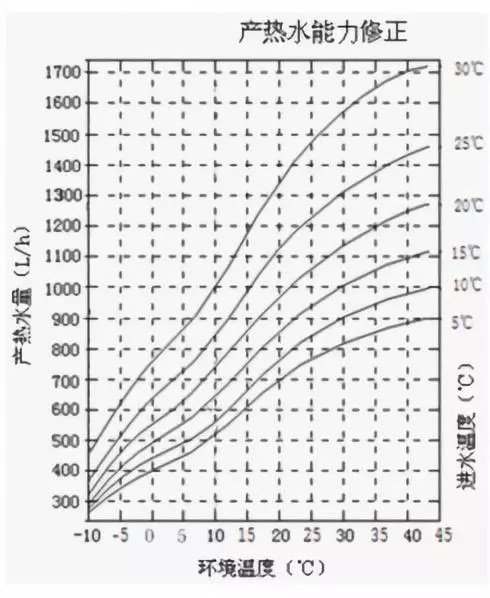 學術交流中心的兩臺空氣源熱泵熱水器產水量修正曲線如下圖: