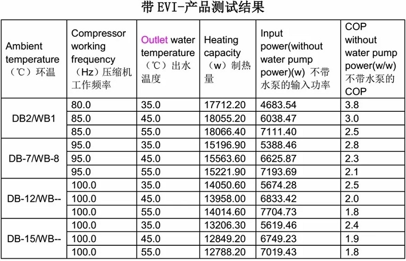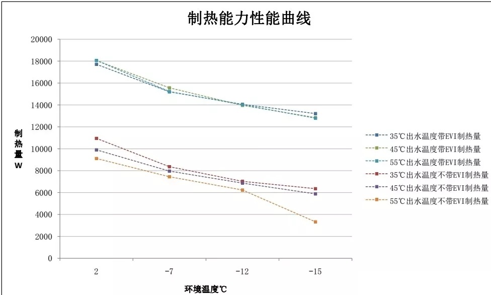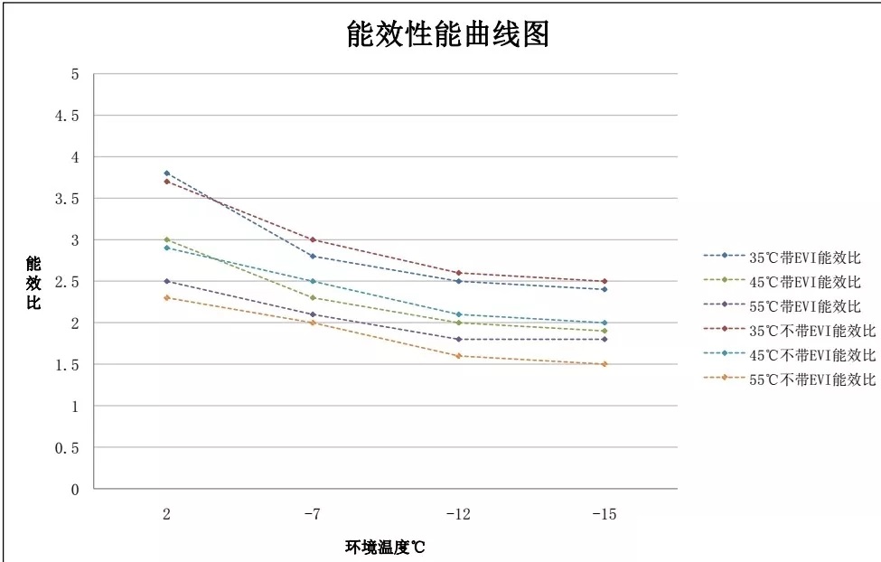 說明EVI技對低環溫下高水溫供熱,無論從能力上還是效率上都有很大幫助;