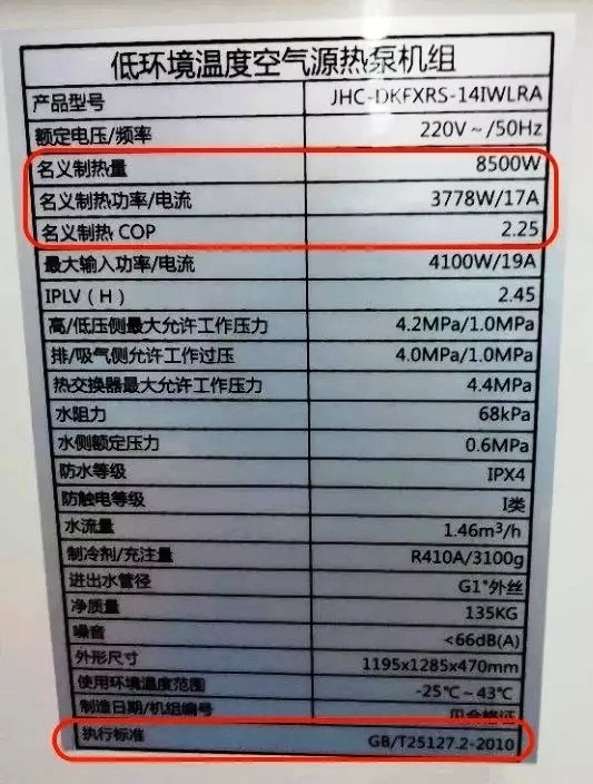 從其銘牌上我們可以看出,該機型執行的標準是GB/T 18430.2。該標準適合于風冷熱泵,其制熱名義工況是7℃。而根據北京農委的要求,低溫空氣源熱泵的送檢要求為:
