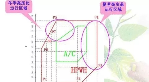圖1 空調壓縮機(A/C)和熱泵壓縮機(HPWH)運行范圍對比圖