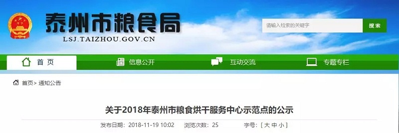 2018年11月19日,泰州市糧食局對(duì)《2018年泰州市糧食烘干服務(wù)中心示范點(diǎn)》進(jìn)行了公示,公示期為2018年11月19日-11月25日,結(jié)果如下:
