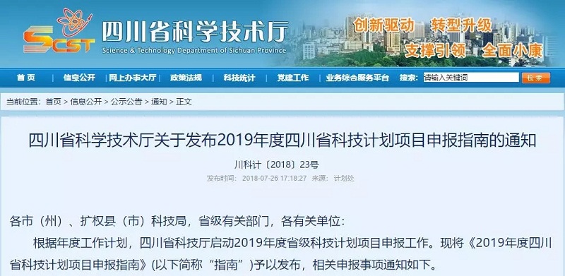 2018年7月26日,四川省科學技術廳發布《2019年度四川省科技計劃項目申報指南》,指出在新能源領域,重點支持空氣能、地熱能、太陽能等能源開發利用與環境保護的應用基礎研究;在能源化工方面,重點支持可再生能源消納技術、綜合能源系統和新型能源交易技術;在環境治理方面,重點支持清潔能源、智慧環保等建設新技術、新工藝研究。 深地科學與工程,重點支持深部地熱開發與發電一體化技術等方向的基礎和應用基礎研究。