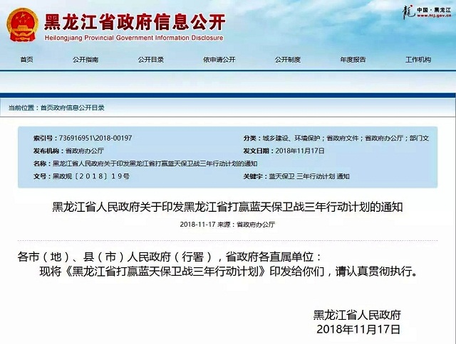黑龍江省打贏藍天保衛戰三年行動計劃