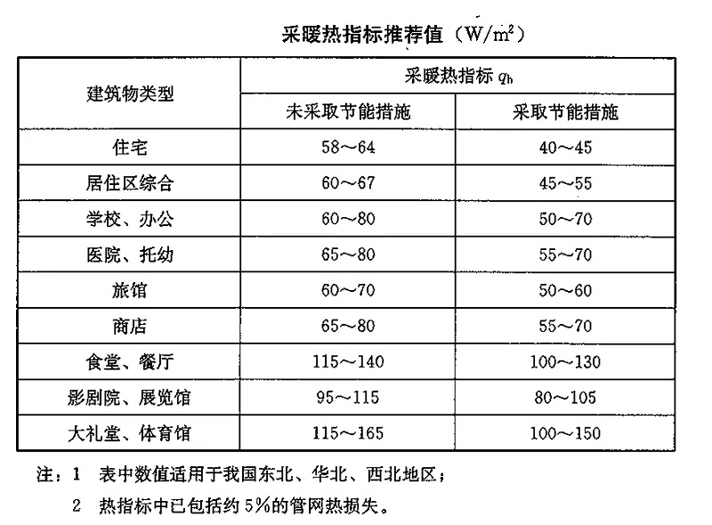 據了解,該項目室外計算參數取自《采暖通風與空氣調節設計規范》GBJ50019(2001年版)供暖計算依據:依據《城鎮供熱管網設計規范》CJJ34-2010采暖熱指標推薦值q(W/m2)。同時,供暖所需熱能選擇,根據以下設計指標和經驗值,熱負荷指標取設計指標的70%左右設計。