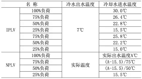 IPLV(integrated part load value)綜合部分負荷性能系數是用一個單一數值表示空氣調節用冷水機組的部分負荷效率指標,它是IPLV工況下機組部分負荷的性能系數值,按照機組在各種負荷下運行時間的加權因素,通過IPLV公式得到的數值。