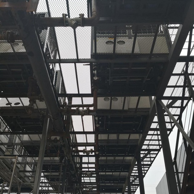 設備支架在設計時,需要考慮空氣源熱泵機組的重量,管網重量,管網內水的重量,支架自身的重量,以及機組及水泵的運行震動等。在對每個細節進行反復計算,并將多種方案進行設計研討,最終決定將原有方案進行深度優化設計。既保證設備安全平穩運行,又能方便后期設備的檢查、維護。見下圖: