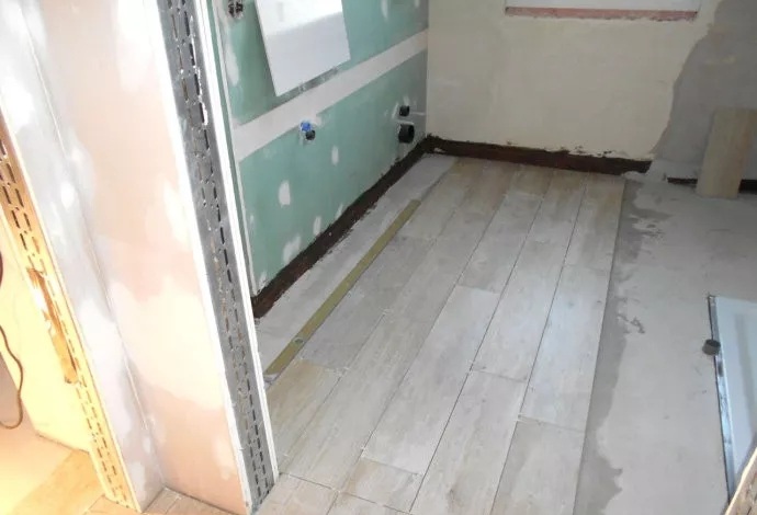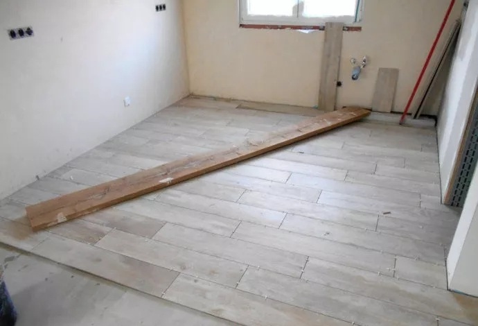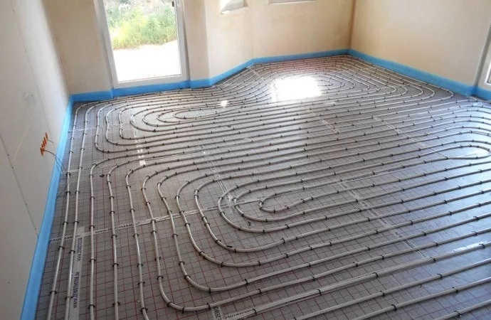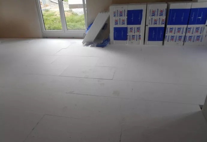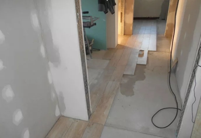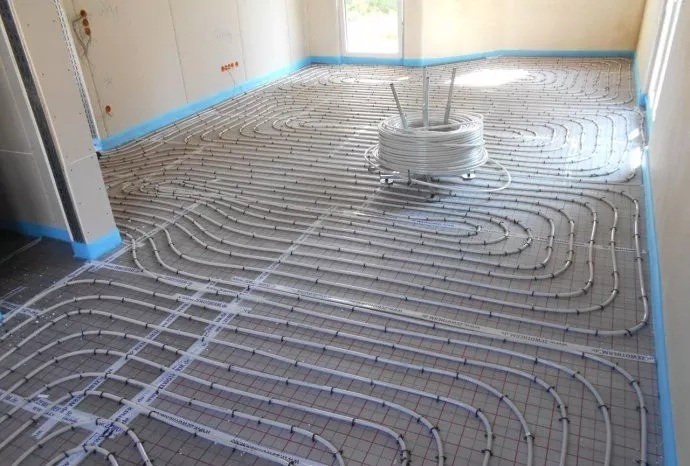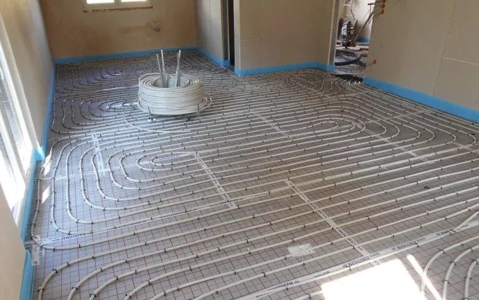 室內“地暖地面”的表層,已經開始鋪貼瓷磚地面