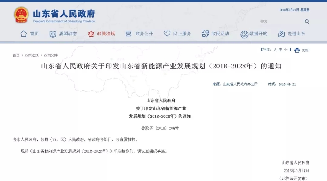 2018年9月21日,山東省人民政府發(fā)布《山東省新能源產(chǎn)業(yè)發(fā)展規(guī)劃(2018-2028年)》,指出新能源產(chǎn)業(yè)規(guī)模不斷壯大。到2022年,山東省新能源產(chǎn)業(yè)總產(chǎn)值力爭達(dá)到7000億元,產(chǎn)業(yè)增加值力爭達(dá)到2400億元。到2028年,新能源產(chǎn)業(yè)總產(chǎn)值、增加值力爭分別達(dá)到12000億元和4000億元,成為山東省新的重要支柱產(chǎn)業(yè)。
