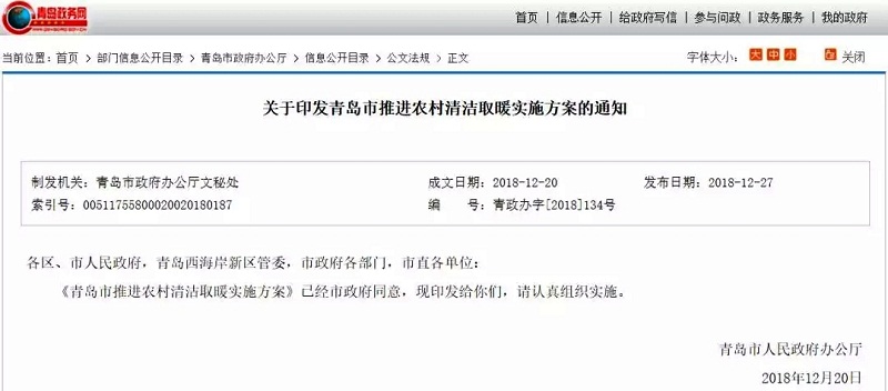 關于印發青島市推進農村清潔取暖實施方案的通知