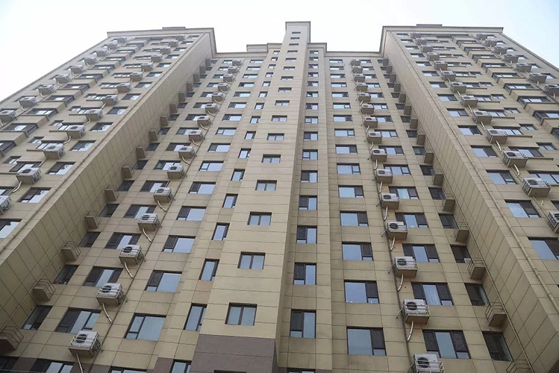 1月8日,記者走入高邑縣睿嘉園小區,該小區只有一棟樓,樓體外面每家每戶的窗戶外面都掛著類似空調室外機的機子,但這并不是空調室外機,而是一種可再生能源供熱機——空氣源熱泵。